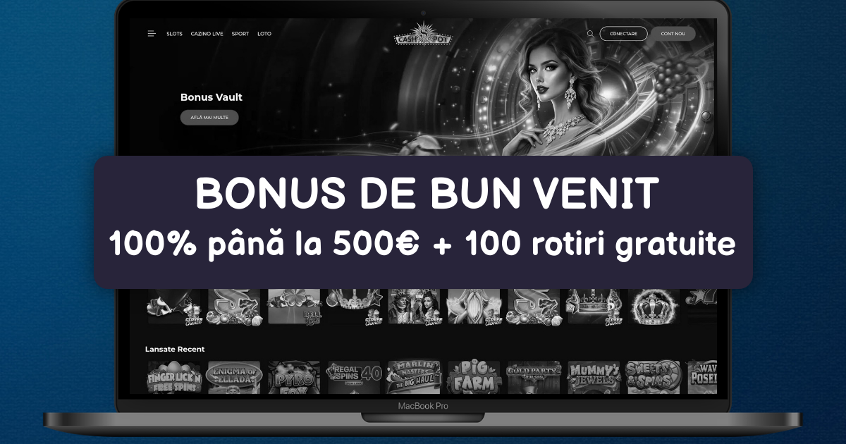 Cashpot Casino oferă bonusuri de bun venit atractive pentru jucători, incluzând un pachet valorând până la 5.000 RON și 1.000 de rotiri gratuite. Acest bonus se împarte pe primele depuneri și vine cu cerințe de rulaj bine definite. De asemenea, cazinoul propune bonusuri fără depunere și promoții regulate, adresându-se atât utilizatorilor noi, cât și celor fideli, printr-un program de recompense VIP și loialitate care încurajează jocul constant.